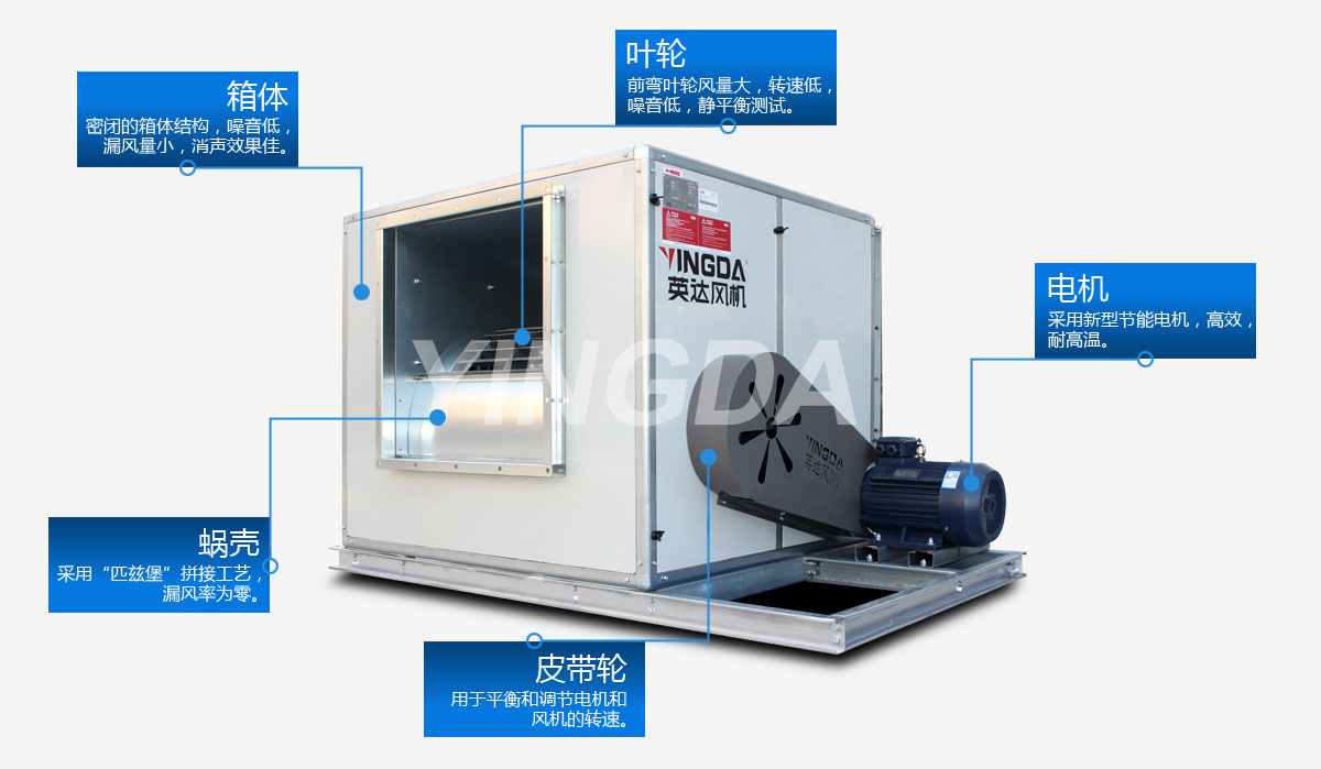 英達風機蝸殼采用流線型雙進風結構,“匹茲堡”拼接工藝,漏風率為零;雙側(cè)板一次成型,精度高,減小裝配后尺寸誤差;葉片一次沖壓 成型,專門夾具確保葉片安裝精確定位。