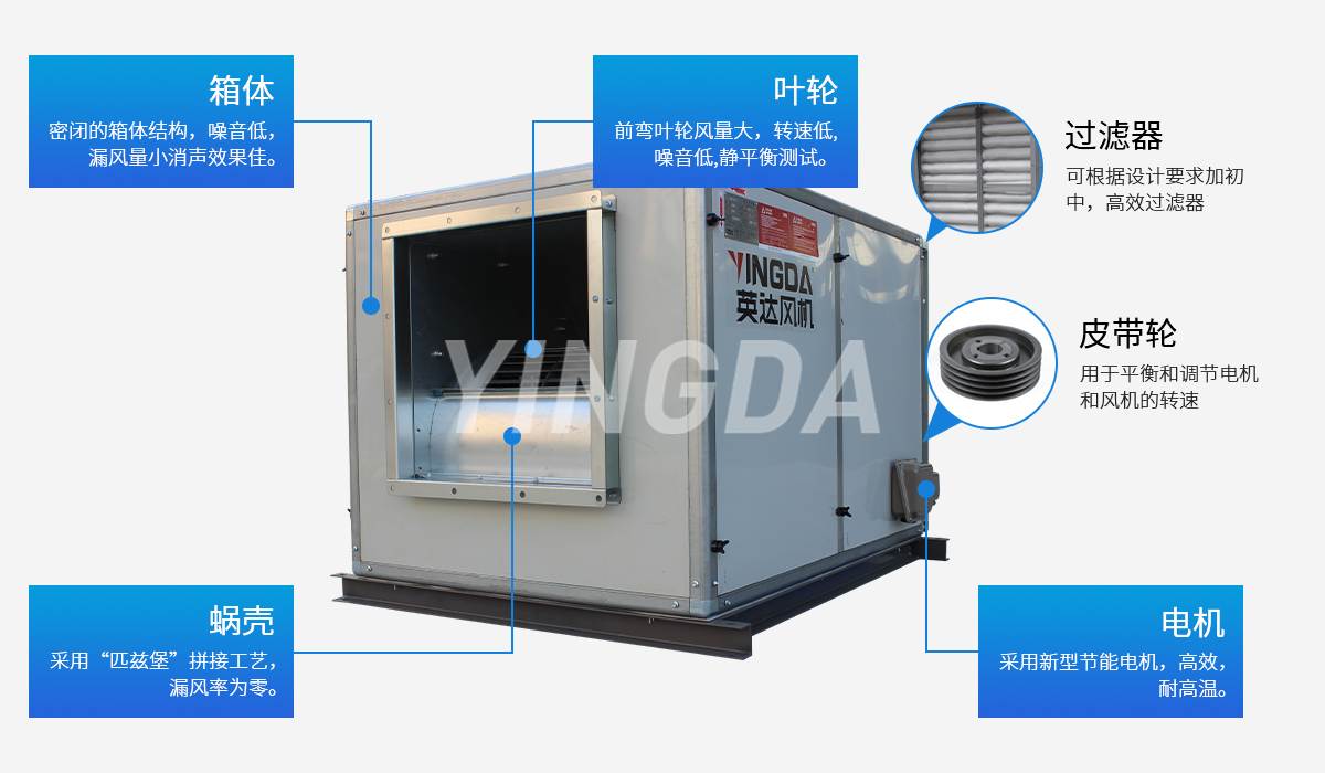 英達(dá)風(fēng)機(jī)蝸殼采用流線型雙進(jìn)風(fēng)結(jié)構(gòu),“匹茲堡”拼接工藝,漏風(fēng)率為零;雙側(cè)板一次成型,精度高,減小裝配后尺寸誤差;葉片一次沖壓 成型,專(zhuān)門(mén)夾具確保葉片安裝精確定位。